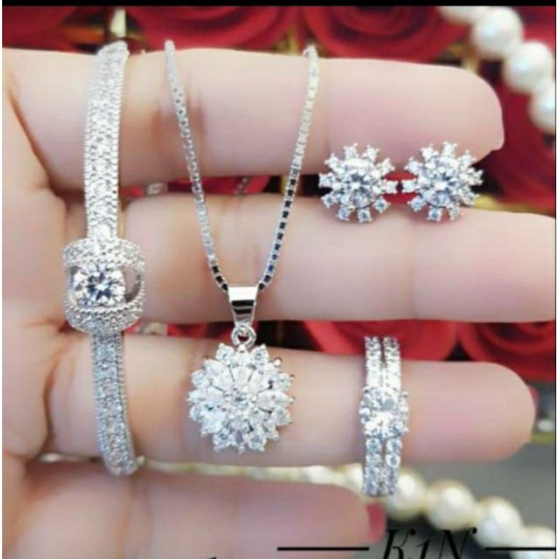 Set Perhiasan Titanium Dewasa Lengkap Dengan Baris Permata Lapis Emas Putih 22k Anti Karat Shopee Indonesia