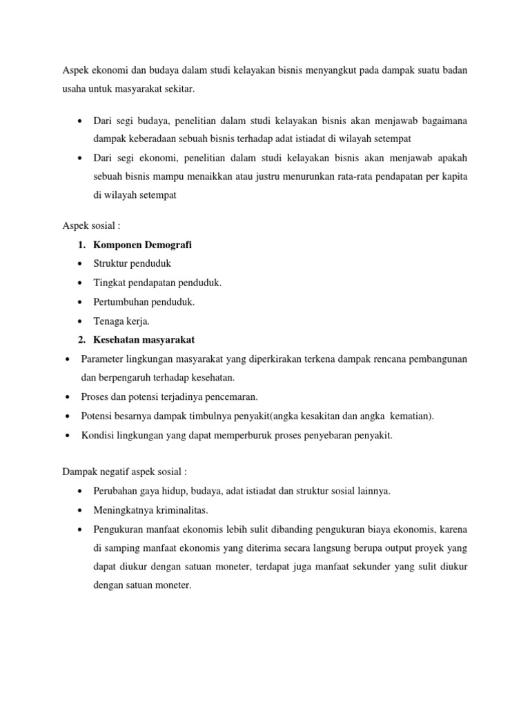 Aspek Ekonomi Dan Budaya Dalam Studi Kelayakan Bisnis Menyangkut Pada Dampak Suatu Badan Usaha Untuk Masyarakat Sekitar Pdf