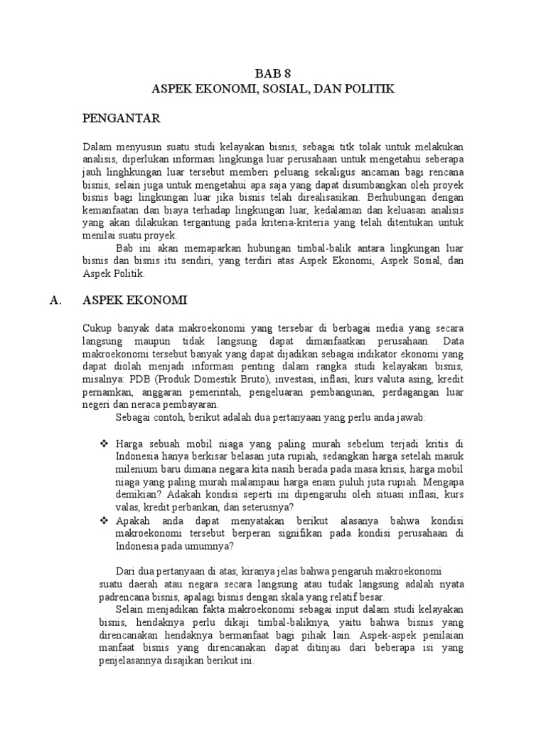 Doc Aspek Ekonomi Dan Sosial Studi Kelayakan Bisnis Indra Rio Academia Edu