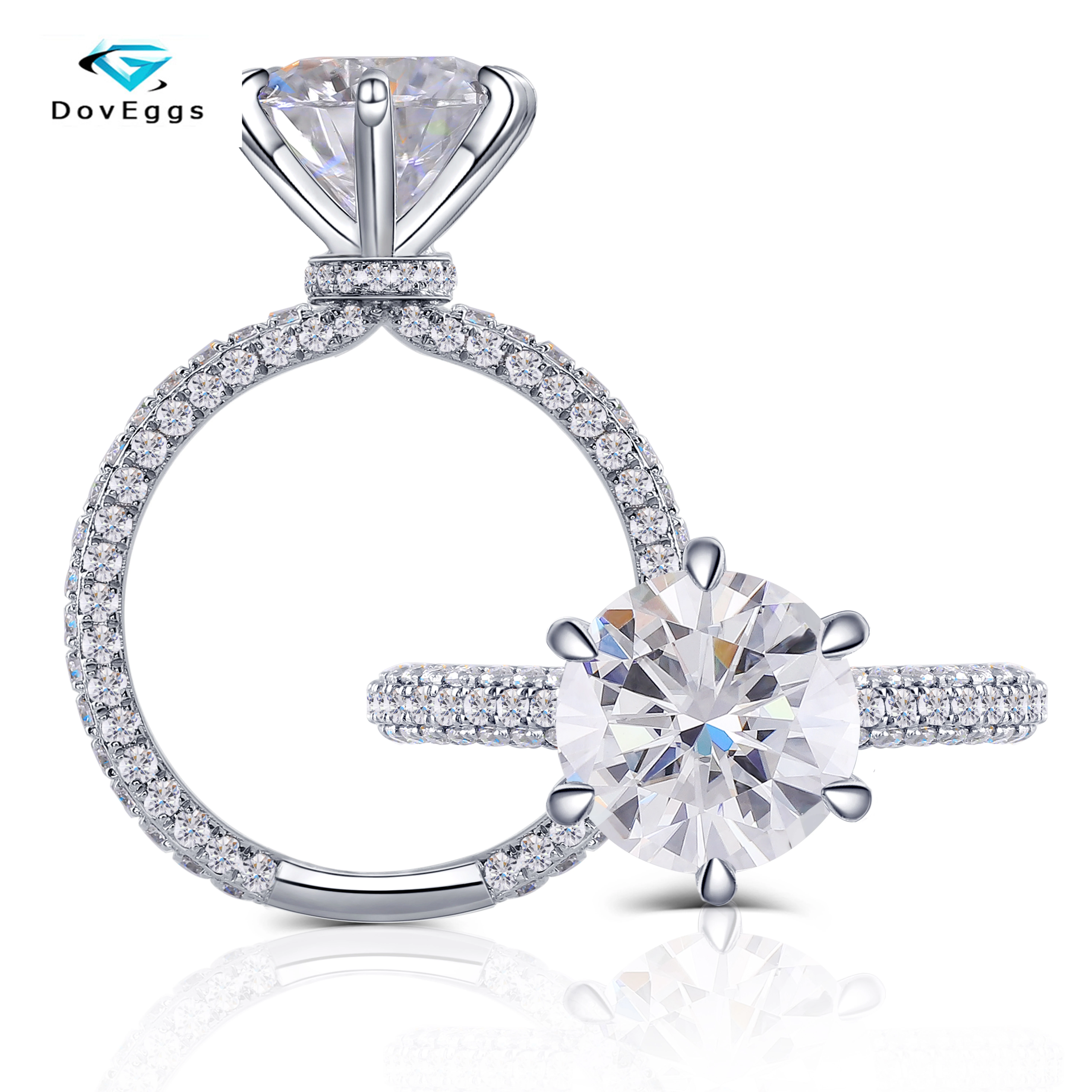 Doveggs 18k 750 Emas Putih Pusat 3ct 9 Mm De Warna Moissanite Cincin Wanita Dengan Aksen Rings Aliexpress