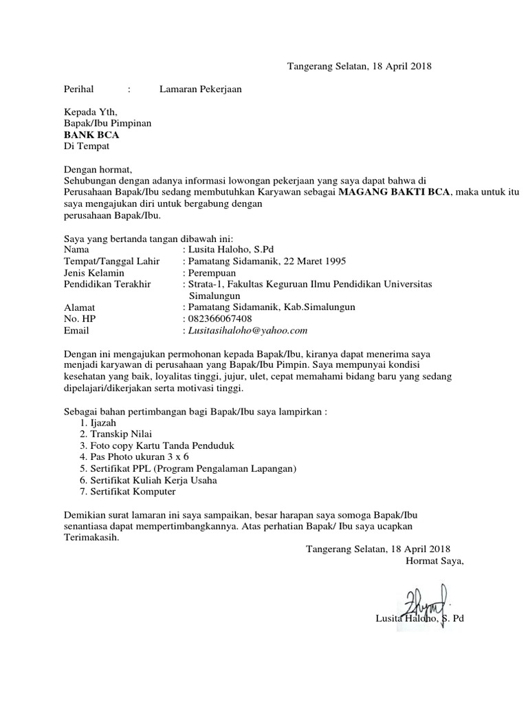 Surat Lamaran Pt Bca Pdf