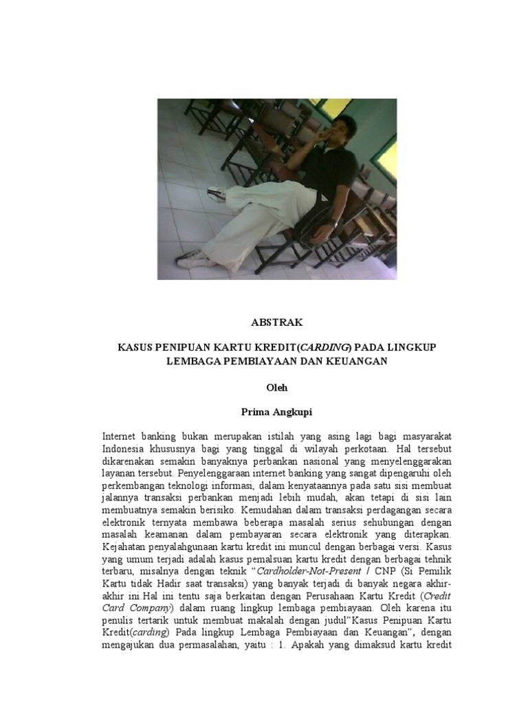 Feb 06, 2022 · Purwakarta Online - Penipuan kartu kredit memiliki dua tipe yaitu penipuan secara offline dan penipuan secara online (Chaudhary 2012). Bentuk penipuan dan kejahatan kartu kredit dapat berupa phising, skimming, carding, cracking, pencurian kartu kredit, ekstrapolasi, dan penipuan melalui telepon.
