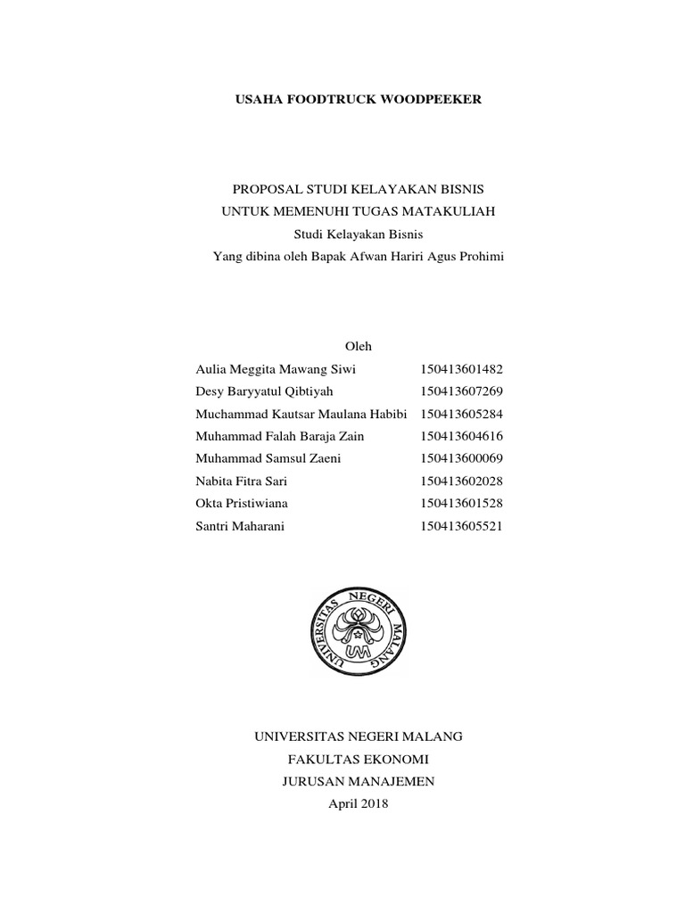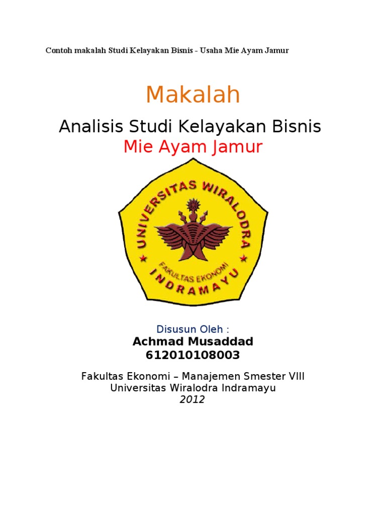 SaveSave Makalah Studi Kelayakan Bisnis For Later. 100%100% found this document useful, Mark this document as useful. Dari survey pasar yang telah dilakukan, makanan-makanan ringan seperti pisang keju, kentang goreng, roti bakar, dan lain-lain serta makanan-makanan berat seperti nasi... Contoh Makalah Studi Kelayakan Bisnis Entrepreunership. ANALISIS KELAYAKAN USAHA DAN ANALISIS SWOT I. PENDAHULUAN 1.1 ... Pendaahuluan Studi Kelayakan Bisnis Makanan Ringan. 1 BAB I PENDAHULUAN 1.1 Latar Belakang Dalam menjalankan ... I. PENDAHULUAN A. Latar Belakang Studi kelayakan usaha adalah ...