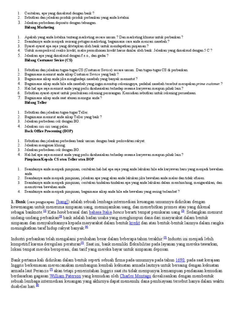 Ciri-ciri Bank Umum Bank ini memiliki tujuan komersial artinya selain bertugas melayani, bank umum juga mencari keuntungan. Bank ini mempunyai peranan untuk menghimpun dana masyarakat dan menyalurkannya dalam bentuk kredit. Bank ini bisa melakukan kegiatan valuta asing. Ciri-ciri bank sentral adalah : Lembaga yang tidak mencari keuntungan Kegiatan bank dikelola oleh pemerintah Bertindak sebagai pengawas dan pembina bank Dapat secara langsung mempengaruhi kegiatan usaha bank Mengeluarkan uang kertas dan uang logam Tidak memiliki saingan Bertindak sebagai Lender of The Last Resort bagi perbankan Tidak melayani jasa perbankan bagi individu dan perusahaan non ... Ciri-Ciri Bank yang Likuid. Memegang alat likuid (uang kas, rekening pada bank sentral dan bank lain) sama dengan jumlah kebutuhan likuiditas yang.