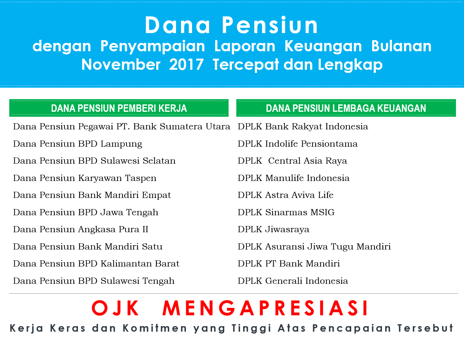 Dana Pensiun Lembaga Keuangan Adalah: Ini Pengertian dan ... Jan 07, 2022 · Dana pensiun lembaga keuangan adalah suatu program dana pensiun yang dibuat oleh pihak perusahaan asuransi jiwa atau pihak bank. Tujuan dari dibentuknya dana pensiun lembaga keuangan adalah untuk menjalankan program pensiun iuran pasti bagi setiap individu atau perusahaan.