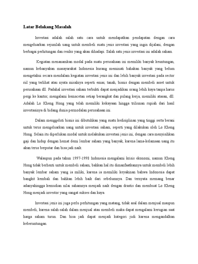 Saham yang dimiliki lo kheng hong. Kisah Lo Kheng Hong yang Nekat Berhenti Kerja untuk ... JAKARTA, iNews.id - Kisah Lo Kheng Hong yang nekat berhenti kerja untuk menjadi investor dimulai dari tahun 1996 atau saat dia menginjak usia 37 tahun. Sebelum memutuskan menjadi full-time investor, pria yang dikenal dengan sebutan Warren Buffett-nya Indonesia ini pernah bekerja di salah satu bank. Lo Kheng Hong menyebut bahwa dirinya membeli ... 43 kode saham bank panin - Seputar Uang Terbaru Kartu Kredit Bank Panin | Mafiakartukredit.com Bank Panin atau yang juga bisa diucap "Panin Bank" sudah berdiri sejak tahun 1971. Merujuk pada website perusahaan maka Panin Bank adalah bank pertama di Indonesia yang go public menawarkan saham-sahamnya untuk Panin Call Center: 500678 (tanpa harus kode area) atau 021 - 2515555. Andai Melakukan Ini, Lo Kheng Hong Bisa Terima Uang Rp 400 ... Jika melihat tren historis harga saham PTRO, kemungkinan besar harga tender offernya akan berada di harga pembelian dari INDY yakni di sekitara Rp 2.988/saham atau 8,26% lebih tinggi dari harga pasar saat ini. Perlu diketahui, selain INDY, saham PTRO juga dimiliki oleh salah satu investor ritel kawakan Lo Kheng Hong (LKH). Lo Kheng Hong - Investor Sukses dan Daftar Saham Miliknya Saham pertama yang dimiliki LKH adalah saham PT Gajah Surya Finance Tbk yang dibelinya ketika perusahaan tersebut melakukan penawaran saham perdana ke publik atau IPO pada tahun 1989 lalu. Rupanya, saham pertama milik LKH membuatnya rugi. Harga sahamnya anjlok sehingga membuat LKH harus menjual sahamnya dengan harga yang lebih rendah.
