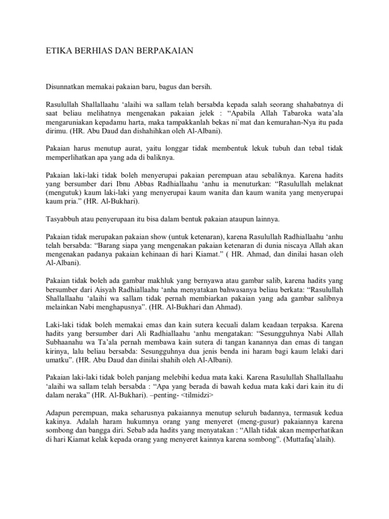 Larangan Pria Memakai Pakaian Sutera - Rumaysho.Com "Diharamkan bagi laki-laki dari umatku sutera dan emas, namun dihalalkan bagi perempuan." Di antara hikmah kenapa sampai emas dan sutera dilarang: 1- Tasyabbuh (penyerupaan) dengan orang kafir sebagaimana disebutkan dalam hadits Hudzaifah di atas.