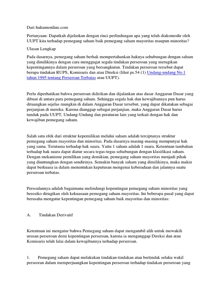 Hak dan kewajiban pemegang saham. PT Perkebunan Nusantara VII Raih Peringkat I Kategori ... Dalam sambutannya, Abdul Ghani mengatakan diusianya yang ke 26 tahun ini, Holding mendapat dukungan penuh pemegang saham ehingga dalam menjalankan transformasi tidak memenuhi kendala yang berarti. Hal ini, kata dia, menjadi kekuatan bagi PTPN Grup untuk mewujudkan tujuan dan harapan transformasi yang dijalankan, yakni menjadikan perusahaan ... Ini Tarif Royalti Lagu yang Harus Dibayar Tempat Rekreasi ... Digital GridOto.com Bolasport.com Grid.id Kontan.co.id Kgmedia.id Otomatis Mode Gelap Mode Terang Login Berikan Masukanmu Langganan Kompas.id News Nasional Megapolitan Global Surat Pembaca Kilas Daerah Kilas Korporasi Kilas Kementerian Sorot Politik Kilas Badan Negara Kilas Parlemen Indeks Regional Medan... pojk 16-2020.pdf Apr 21, 2020 — kewajiban rapat umum pemegang saham; ... pemegang saham untuk hadir dan memberikan hak suara ... d. hak dan kewajiban Pengguna e-RUPS;.21 pages "Sakarlut vs Marepet" | Padek.co Artinya, Gubernur menjadi pemegang saham 51 persen. Tunaikanlah amanat regulasi itu. Apalagi hak sebagai pemegang saham mayoritas sudah dinikmati semenjak dua tahun yang lalu. Masak selama dua tahun hanya mau mendapatkan hak sementara kewajibannya tak kunjung ditunaikan.