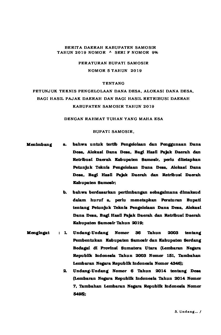Juknis Bantuan Pemerintah Revitalisasi Desa Adat Tahun ... Juknis Bantuan Pemerintah Revitalisasi Desa Adat Tahun 2019. Ditulis oleh Sisi Edukasi 11 Jan 2019. Berikut ini adalah berkas Juknis Bantuan Pemerintah Revitalisasi Desa Adat Tahun 2019. Peraturan Direktur Jenderal Kebudayaan Nomor 3 Tahun 2018 Tentang Petunjuk Teknis Bantuan Pemerintah Revitalisasi Desa Adat Tahun 2019. Download file format PDF. PDF Pengelolaan Alokasi Dana Desa (Add) Dalam Upaya ... menyatakan bahwa skripsi dengan judul : Pengelolaan Alokasi Dana Desa (ADD) Dalam Upaya Pembangunan Pedesaan Di Desa Sumberrejo Kecamatan Donorojo Kabupaten Jepara, adalah hasil tulisan saya sendiri. Dengan ini saya menyatakan dengan sesungguhnya bahwa dalam skripsi ini tidak terdapat keseluruhan atau sebagian tulisan orang lain yang saya ambil ... [UPDATE] Contoh JUKNIS Pelaksanaan Penggunaan Dana Desa ... [UPDATE] Contoh JUKNIS Pelaksanaan Penggunaan Dana Desa Tahun Anggaran 2021, Format Ms Word AMBIL DISINI! ... Penatausahaan dimaksud mengacu pada Peraturan Menteri Dalam Negeri Nomor 20 Tahun 2018 tentang Pengelolaan Keuangan Desa. f. Dana Desa wajib disimpan di Rekening Kas Desa dan ditarik berdasarkan Rencana Penggunaan Dana. g. Pelaksana ...
