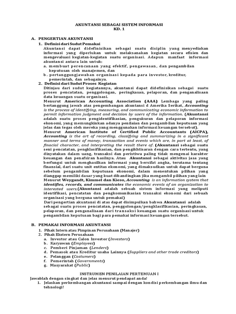 Mengapa pemberi pinjaman berkepentingan terhadap informasi akuntansi. MATERI II PENGANTAR TEORI AKUNTANSI - PDF Free Download Pemberi pinjaman (kreditor ) dan pemasok Manajemen perusahaan Kantor Pajak Organisasi Adanya penyelewengan Penyajian Informasi Akuntansi (sebagai produk umum) secara tidak Tujuan sosial mencakup kewajaran laporan, informasi seimbang,perlindungan terhadap investor. Fungsi Akuntansi dan Pemakai Informasi Akuntansi | Akuntansi Informasi akuntansi dipergunakan oleh pihak ekstern untuk membuat keputusan ekonomi terhadap organisasi. 4. Pemasok dan Kreditur usaha lain Sama halnya dengan pihak bank atau pemberi pinjaman, pemasok dan kreditur usaha lainnya juga berkepentingan terhadap informasi akuntansi. Pengertian Akuntansi dan Tujuan Akuntansi | FinansialMu Mengapa akuntansi dikatakan sebagai seni ? karena akuntansi membutuhkan kemampuan, keyakinan, insting, serta kreativitas ditambah dengan keahlian dari para individu yang bergerak di dalamnya. Jadi bagi seseorang yang memahami akutansi, tidak hanya dituntut keahlian atau... PDF Rencana pelaksanaan pembelajaran Mengapa pemberi pinjaman berkepentingan terhadap informasi akuntansi? TUGAS KELOMPOK Dari berbagai manfaat informasi akuntansi yang telah kalian ketahui dari pihak - pihak yang menggunakan, apa kesimpulan kalian mengenai kegunaan akuntansi ?