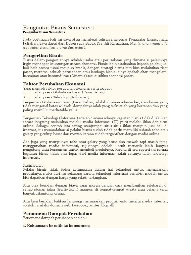Pengantar bisnis semester 1