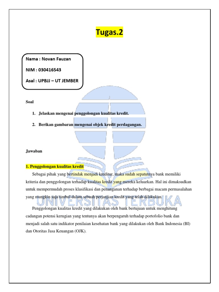 Training Penggolongan Kredit Perbankan Dari Kacamata Hukum ... Kolektibilitas kredit merupakan penggolongan kredit dengan membagi atau memisah-misahkan kredit/pinjaman berdasarkan kelancaran atau ketidaklancaran pengembalian kredit atau pinjaman tersebut baik pokok ataupun bunganya. Bram Nugraha: November 2012 - bramnugra.blogspot.com Penggolongan kredit berdasarkan kategori tertentu guna memantau kelancaran pembayaran kembali (angsuran) oleh debitur. Berdasarkan surat keputusan Direksi Bank Indonesia No.31 / 147 / Kep / DIR Tanggal 12 November 1998 tentang kualitas aktiva produktif pasal 6 ayat 1, membagi tingkat kolektibilitas kredit menjadi : Kolektibilitas Kredit (Kualitas Kredit) - Upacaya Diragukan (Kolektibilitas 4), apabila terdapat tunggakan pembayaran pokok dan atau bunga sampai dengan 180 hari. Macet (kolektibiltas 5), apabila terdapat tunggakan pembayaran pokok dan/atau bunga di atas 180 hari. Kredit akan digolongkan bermasalah ( Non Performing Loan/NPL) apabila telah masuk dalam kualitas Kurang Lancar, Diragukan, dan Macet. Mengenal BI Checking, penggolongan kolektibilitas kredit ... Kolektibilitas kredit merupakan penggolongan kredit dengan membagi atau memisah-misahkan kredit/pinjaman berdasarkan kelancaran atau ketidaklancaran pengembalian kredit atau pinjaman tersebut baik pokok ataupun bunganya.
