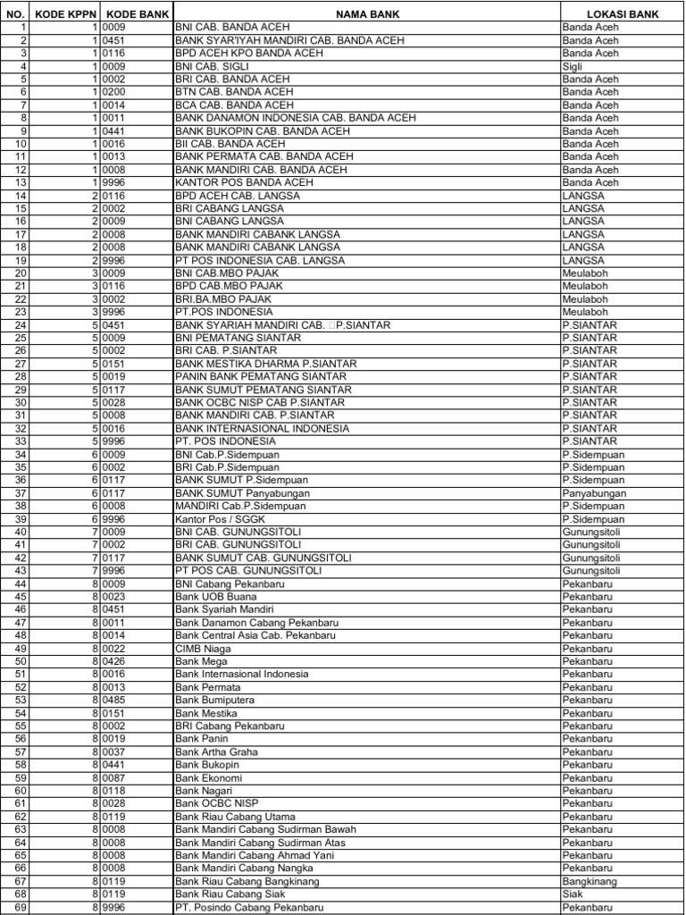 Daftar Cabang Aplikasi Online - KlikBCA Kantor Cabang BCA yang Telah Melayani Permohonan Pembukaan Rekening via ... (0009) Jln. Pemuda 90-92 Semarang 50133 Jawa Tengah, 024-3510575 (hunting ... Kode Cabang BCA 0998 dan 0938, KCU Manakah Itu? Baca Juga: Kode Bank BCA Untuk Verifikasi Paypal. Admin telah menelusuri bahwa kode cabang BCA 0998 adalah Kantor BCA Pusat yang berlokasi di Menara BCA, Grand Indonesia Jakarta. Hal tersebut disampaikan oleh akun twitter resmi dari Halo BCA. Lalu bagaimana dengan kode cabang BCA 0938 dan lainnya? Silahkan lihat dibawah ini. 19+ Kode Wilayah Bri - Failfaire News Ketika kamu akan melakukan proses transfer, maka kamu diwajibkan untuk menyertakan nomor rekening penerima dan juga kode bank (routing . Misalnya saja, nasabah bank bca, tetapi ingin melakukan transfer ke rekening bank bri. Kode 0001 0002 0003 0004 0006 0007 0008 0009 0010 0011 0012 0013 0014 0015 0016 0017 0018 0019 0020 0021 0022 0023 0024.