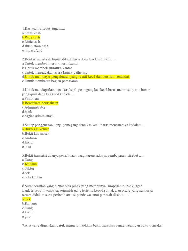Berikut ini yang merupakan tujuan dibentuknya dana kas ... Berikut ini adalah tujuan dibentuknya dana kas kecil, yaitu Formulir yang diisi oleh pemakai dana kas kecil untuk dapat menggunakan dana kas kecil adalah Untuk mendapatkan dana kas kecil pemegang kas kecil harus membuat permohonan pengajuan kepada Saat terjadi pembentukan dana kas kecil dewi sebagai pemegang kas kecil akan mencatatnya kedalam Berikut ini adalah tujuan dibentuknya dana kas kecil, yaitu Berikut ini yang merupakan tujuan dibentuknya dana kas kecil adalah Formulir yang diisi oleh pemakai dana kas kecil untuk dapat menggunakan dana kas kecil adalah Dalam pengelolaan dana kas kecil transaksi pembentukan dana kas kecil merupakan transaksi Untuk mendapatkan dana kas kecil pemegang kas kecil harus membuat permohonan pengajuan kepada Pengertian Kas Kecil, Ciri, Tujuan, Fungsi dan Metode ... Tujuan Kas Kecil Tujuan dibentuknya kas kecil yaitu Untuk menangani masalah perlengkapan kantor yang dialami bagian kantor Untuk menghindari cara pembayaran yang tidak ekonomis dan tidak praktis atas pengeluaran yang jumlahnya relatif kecil dan mendadak